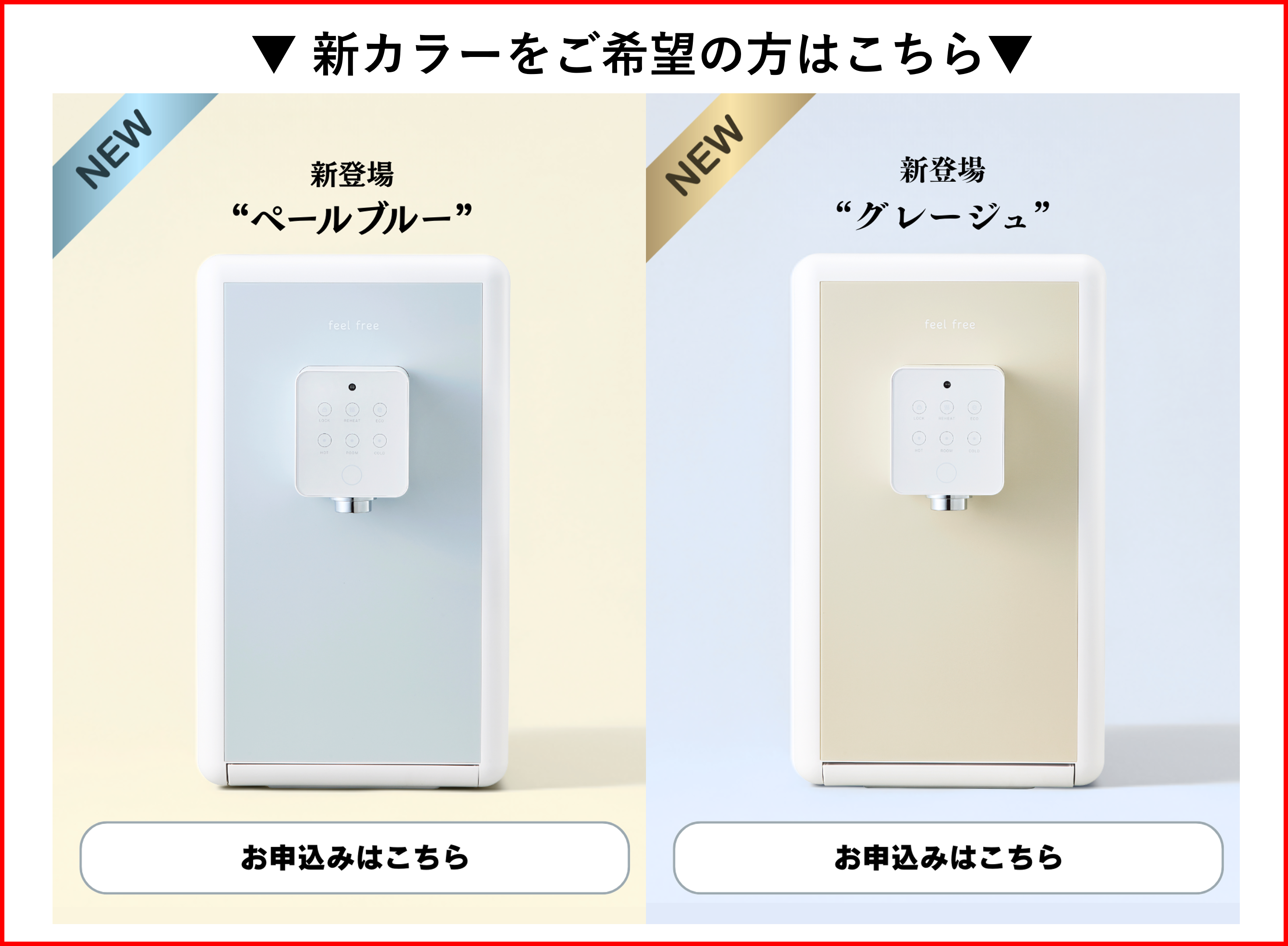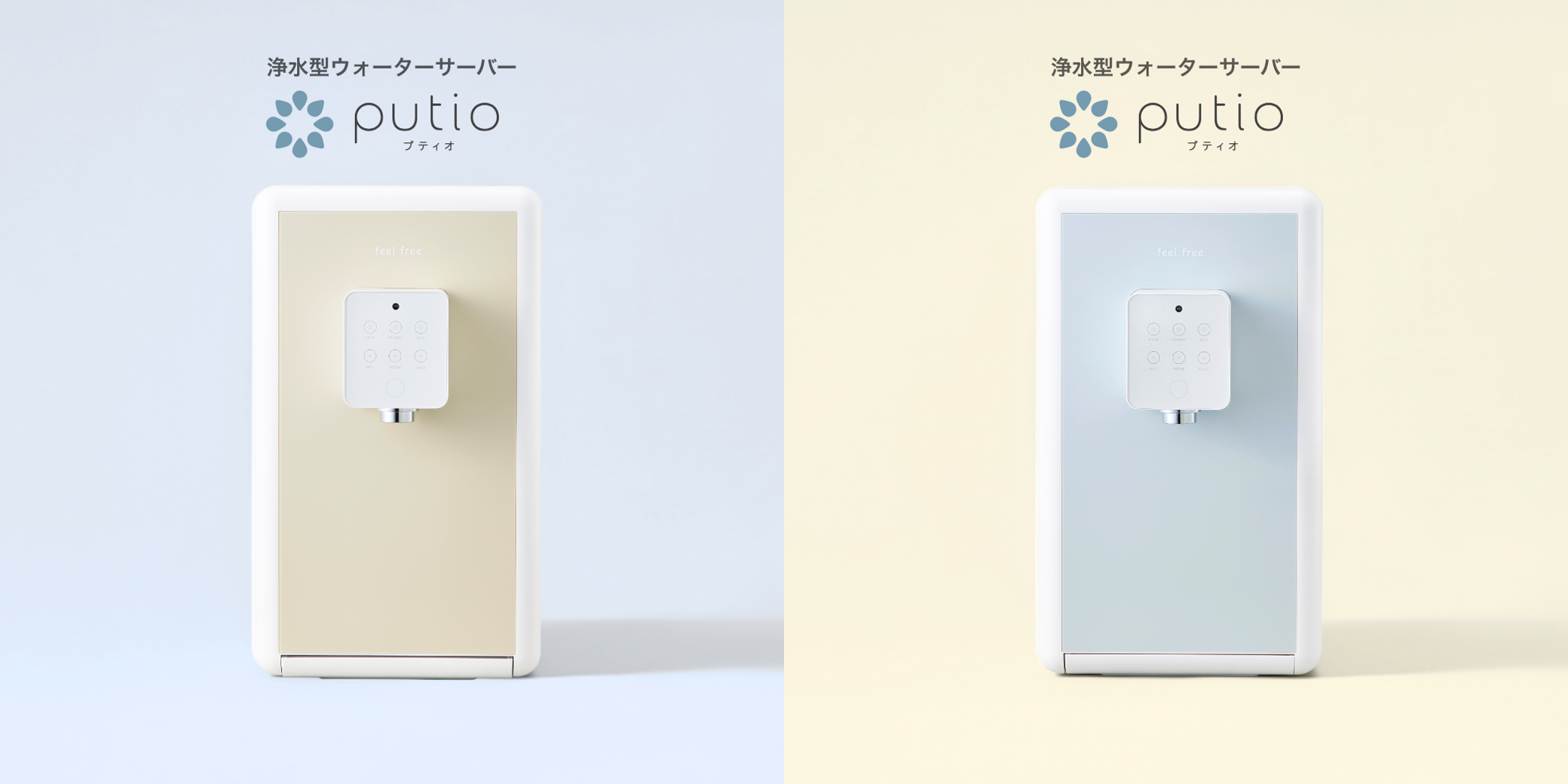 浄水型ウォーターサーバー feel free putio(フィールフリープティオ) に、新たに 「グレージュ」 と 「ペールブルー」 の2色が登場しました。